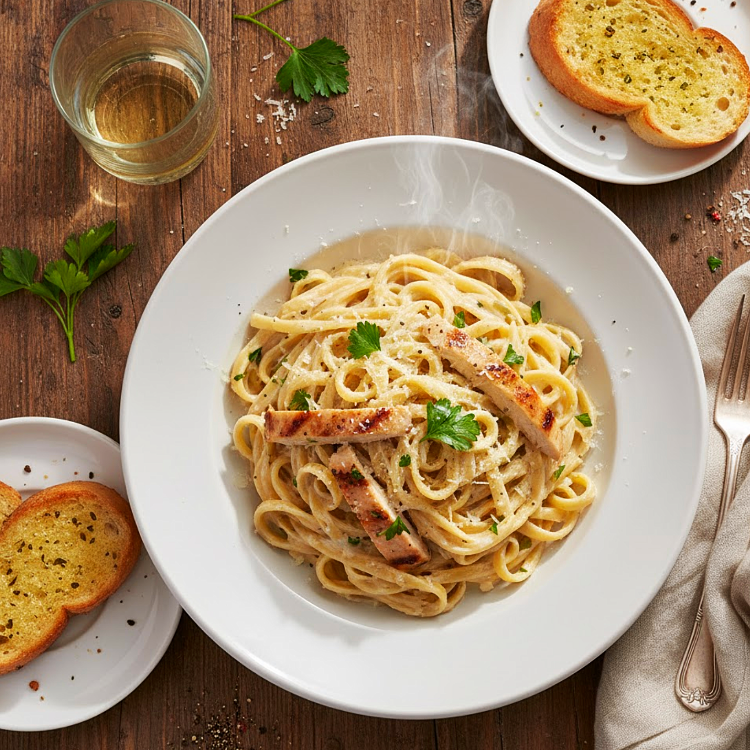 신선한 빵 곁들이기: 알프레도 파스타의 풍부한 소스와 함께 신선한 이탈리안 브레드를 곁들이면 최고의 한끼 식사가 됩니다.